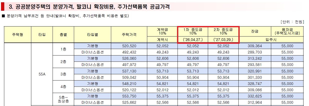 - 1차 중도금: 2026년 4월 27일(예정)